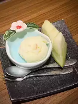 ❥ The dessert of the day was Japanese cantaloupe and grapefruit syrup. The cantaloupe was so sweet!