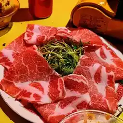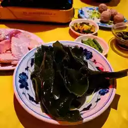 I ordered were sliced pork, pork intestines, chicken, and some random vegetables. I opened the picture to show you the tofu puffs. Dip it in the sauce. It's really good. My family doesn't eat beef.