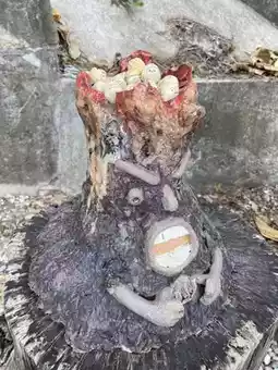 First, take the street ferry to Sai Kung Public Pier to reach Sharp Island. After getting off the boat, walk along the stone path next to the beach to the end, then turn left to the mountain path stairs (there is a small artwork next to the stairs, a volcano that sprays pineapple buns) 😂. Start hiking from here, and you can see some very thoughtful works of art along the way, which are very delicate and cute. (Everyone remember to take care of them! They are the hard work of others. 😄)