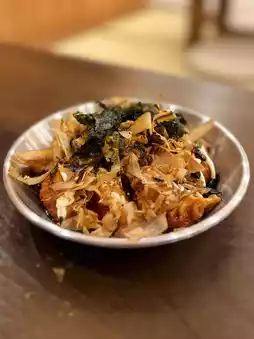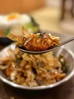 This is "dumplings + Osaka grilled" crossover🎌 The bottom layer is fried crispy, the surface is covered with Osaka grilled sauce + salad dressing + wood fish shreds, and some seaweed to enhance the freshness ~ crispy outside and juicy inside, bite open and the meat juice burst out 💦 but really can't help but eat it all🤤