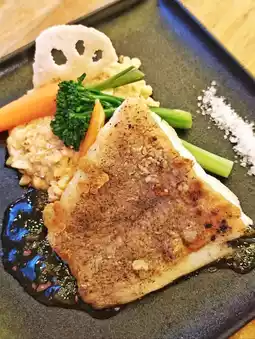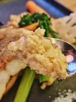 Honey 🍯 grapefruit fried sturgeon taste quite special, 🐟 fish skin fried to golden crispy, grapefruit honey sauce sweet and sour 😋 quite refreshing, fish meat is very tender, with 🧀 cheese flavor cauliflower rice, 🥦 healthy and delicious.
