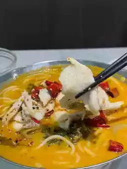The freshness is rich, the chicken bone boiled broth is the base, the soup is rich, the signature herring is added smooth and tender without fishy, the meat is tender, after absorbing the soup sour and spicy fresh fragrance, melts in the mouth. The rice noodles are bouncy enough to achieve the effect of hanging sauce.