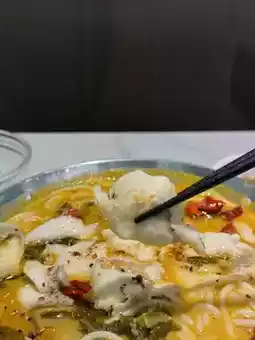 Signature Herring Slices with Rice Noodles (Sauerkraut Golden Soup): Golden soup is characterized by sour, spicy and fresh soup, usually combining the rich taste of pickled cabbage, fish fillets and broth, the soup is golden and tempting😍 Pickled pickled cabbage brings a natural fermented sour taste, with the slight spiciness of chili, forming a level of "sour and spicy, spicy and sweet".