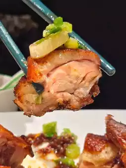 The roast duck features crispy skin and tender meat, with a rich aroma that isn't gamey. Pairing it with scallion paste enhances the flavor even further.