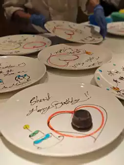 On the other hand, there is also a message of affection 💕 The master makes heart-shaped desserts on the spot and writes blessings on the plate 🥰