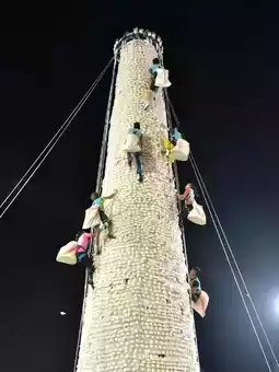 The contestants climbed up a mountain more than ten meters high, which was made up of 9,000 peace buns. They used their hands and feet to pick as many peace buns as possible at a very fast speed. The scene was even more lively than the Chinese New Year!