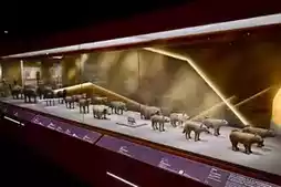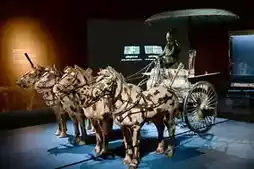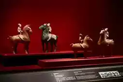Other highlights include bronze geese from the Qin Dynasty, pottery coin molds from the Han Dynasty, gold cakes, clothed walking warrior figurines, painted horse-riding figurines and "Long Live the Emperor" tiles.
