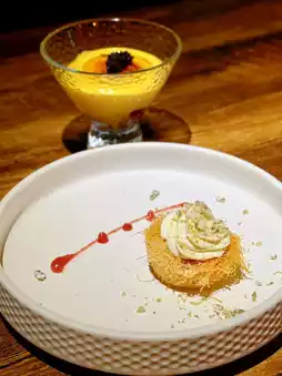 The dessert is exquisitely shaped, with a very crispy outer layer of puff pastry, paired with smooth cream and sweet and sour apple cubes, giving it a refreshing feel.