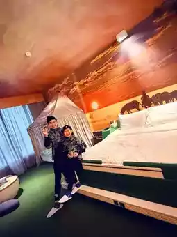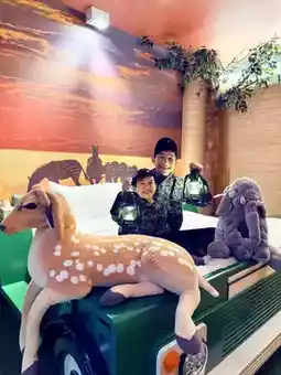 A while ago we stayed at the Gold Coast Hotel and had a great weekend. What surprised us most was that we stayed in a very thoughtfully themed room. The whole room was themed on a forest. There were two beds in the room, one with a forest jeep theme and the other for younger children. The room was filled with camping lights and the whole atmosphere was very forest-style, which made the children very excited and happy. There are also some stone-shaped cuckoo, giraffe and elephant stuffed dolls, which make the whole room very stylish.