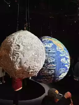 Shakeel is a former practicing dentist and current contemporary artist. Each planet is reinterpreted using delicate embroidery techniques inspired by Pakistani and South Asian culture. With the collaboration of more than fifty men and women who are proficient in craftsmanship passed down from generation to generation, the artists carefully carved out the magnificent contours of each star and gave them life with details.