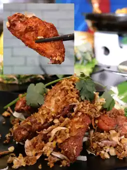 The chicken wings are fried crispy and not too greasy. The minced garlic and butter are also delicious. Like chicken wings we are going to grab it😂
