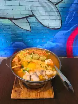 It's MILU's new Thai hot pot 🥘. Ingredients include fresh shrimp🦐, cuttlefish🐙, smooth fish fillets, Thai pickled, Thai pickled pork loin, eggs🥚 and noodles🍜.