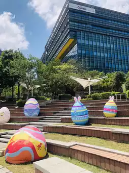 I went to the Science Park today and saw a lot of Easter decorations. I was surprised that there was a small park with many different kinds of Easter eggs arranged for children ๐ง to play in a small maze. There were many different places to take photos and it was full of Easter atmosphere. In addition, there are still many different kinds of restaurants. Here is a rest park for children and adults to have fun๐ฅณ๐ฅณ๐ฅณ