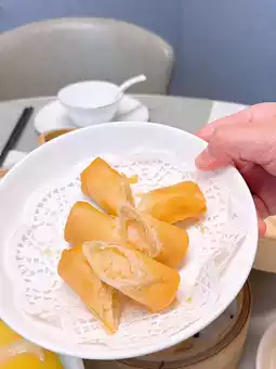 The spring rolls are fried to a crispy texture, with a faint garlic flavour, which gives you the freshness of the shrimp