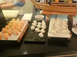 Although there is not too much variety of food, there is still everything. The seafood includes shrimp, sea snails and mussels. The sashimi has octopus and oily fish, which are quite fresh.