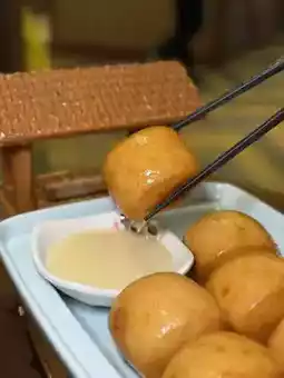 Six pieces of fried buns placed on a wooden boat, from the appearance has been seen thoughtful, the hull ooze faint white smoke forming a fairyland, check-in degree full and full of momentum The buns are fried golden crispy, crispy on the outside and soft on the inside, refreshing and not greasy, with evil condensed milk, simple and delicious!