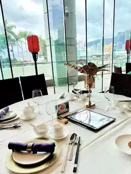 The restaurant offers a spacious setting with floor-to-ceiling glass windows that provide a stunning view of the Golden Bauhinia statue and Victoria Harbor, creating a relaxing and pleasant atmosphere. The staff deserves praise for their friendliness and politeness 👍🏻.