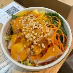 This pan-fried chicken chop is topped with fresh shrimp and pineapple, served with Chinese salad and crushed peanuts, making the overall taste richer. The refreshing taste of Thai salad dressing makes people want to have another bowl. Sushi rice with salad is both healthy and delicious, and is definitely the first choice for fitness meals.