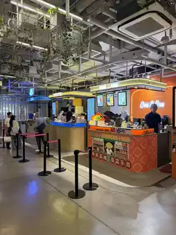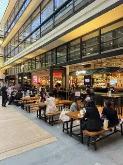 1️⃣ First Floor: About a quarter of the space is occupied by restaurants, while the rest features various small stalls selling local specialty products, food items, and even coffee stands.