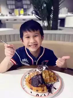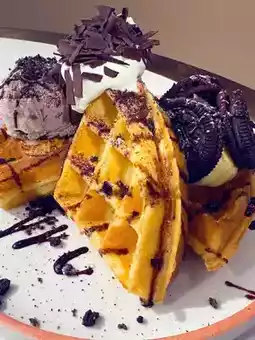 🩷When you order any hot food, you can add a "Purple Sweet Potato Mochi Waffle with Vanilla Ice Cream" at a special price of $38