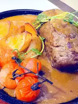 The beef fillet is a large piece, fried until crispy on the outside, while retaining the gravy inside. The beef fillet is very tender and smooth, and paired with cherry tomatoes and potato wedges, it is colorful and delicious.