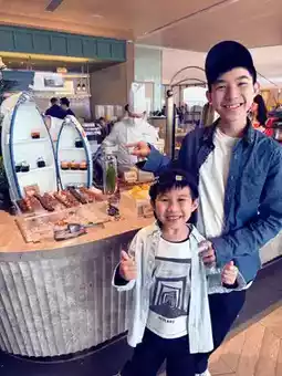 The restaurant has different holiday food arrangements and layouts for every holiday, which is perfect for those of us who like to check in. Their favorite is the big egg waffle skewers 😆 they eat a lot every time they come.