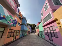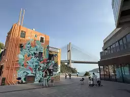 Besides Noah's Ark, Ma Wan has another super chill spot called "Ma Wan 1868." This place is filled with artistic murals, colorful houses, and a cozy café where you can relax and enjoy the stunning view of the bridge.
