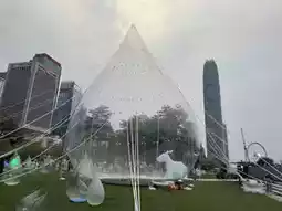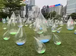 Water droplet installations of different sizes symbolize Dongjiang water injecting vitality and unity into Hong Kong.