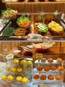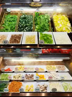 The self-service area changes daily and offers over 90 hot pot ingredients, cooked food, condiments, drinks, and desserts.