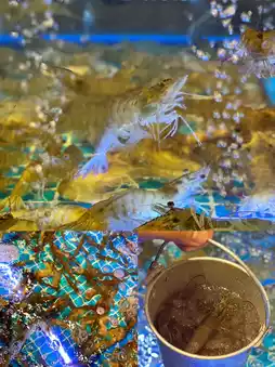 You can catch prawns yourself and eat them immediately, making it a fun experience! The fresh prawns come from local farms, are plump, and raised on organic feed, delivered fresh daily. They taste very sweet and fresh. The live abalone is thick, firm, and has a distinct sweet abalone flavor.
