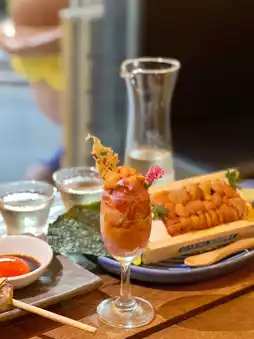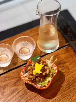 Four types of sake available for two hours of free flow. Especially recommended is the Drunken Whale Tokubetsu Junmai, which has a clean and crisp taste with a slightly fruity sweet and sour flavor.