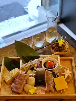 A local dish from Sendai, minced chicken mixed with beef tongue, dipped in rich and savory tsukimi sauce.
