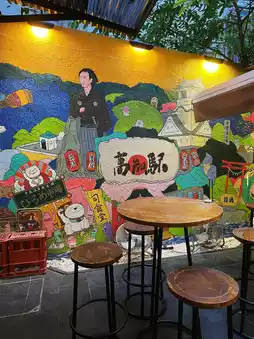 Located in Central Soho, this izakaya specializes in Japanese cuisine, skewers, and sake. The restaurant offers both indoor and outdoor seating, decorated with an array of sake bottles. The open kitchen allows you to watch the chefs at work, and there is a giant mural outdoors.