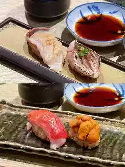 Chewy with a slight crispness, rich but not greasy, served with a sour sauce; one piece wrapped with sea urchin offers a unique flavor.