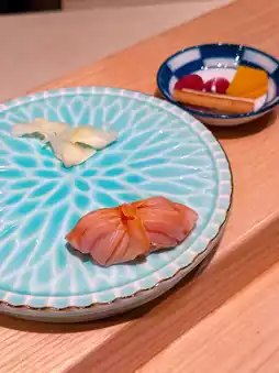 The white salmon has light fat, tender flesh like tofu, with a faint milky aftertaste. The vinegared rice is at the perfect temperature!