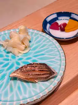 The ark shell is crisp and chewy, with a strong shellfish flavor. The chef’s knife skills make the texture more dimensional, and the seawater taste lingers in the mouth!