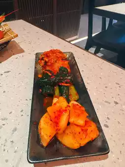 For appetizers, there were salad and kimchi (cucumber, kimchi, radish), fresh and very appetizing! 🥗🥒