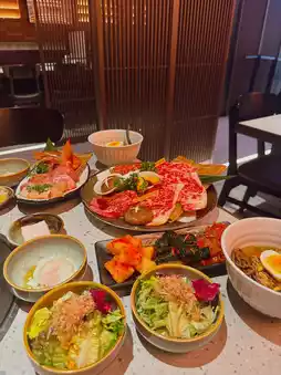 For BBQ, a large plate of grilled Kuroge Wagyu sirloin, the staff recommended we cook it to medium rare and pair it with a soft-boiled egg. The texture was top-notch, truly a delight! 😍💖