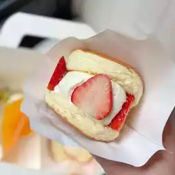 Visually appealing! Smooth Hokkaido milk cream paired with fresh strawberry slices 🍓, the taste is sweet and sour, very refreshing~~