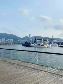 Along the long track, the transparent glass railings do not block the beautiful scenery at all. Looking from afar, you can see the Kai Tak Cruise Terminal across the water. (At night, you can enjoy the dazzling night view.)