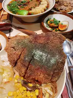 It covers the rice, crispy yet still meaty🤤