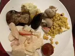 This time, let's introduce the semi-buffet dinner at The Café at Hotel COZi · Waterfront Tsuen Wan. First, you choose a main dish, then you can enjoy unlimited food from the buffet tables outside. They have different main course menus on different days, so you can check their website for details. If you have dinner, you can eat from 6 PM to 9 PM, which is quite enough time. The seating is also quite comfortable and not crowded. The environment is pretty good, and the food quality is acceptable. The Chinese soup is tasty, and there is a small selection of seafood, cooked dishes, fried items, desserts, and more. It’s not super delicious, but it’s average. However, if you pay the full price, it’s not very cost-effective. When there are promotions offering half price or more off on some platforms, it’s worth trying.