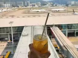 “Sipping lemon tea while watching giant birds soar into the sky—this is the ultimate airport transit enjoyment.”