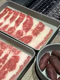 There are 10 set meal options, including beef, pork and chicken. There are several kinds of beef. The cheap ones include beef brisket, beef tongue, Karubi beef slices, beef ribs and beef fillet. The expensive ones include American CAB Angus ribeye steak and Hokkaido Tokachi black hair wagyu beef.
