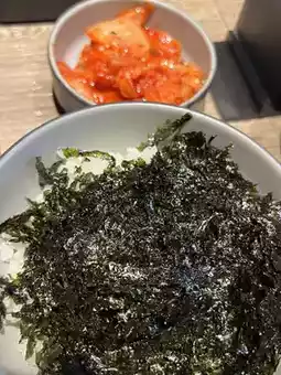 A plate of barbecue 100g, you can choose g, set meal includes: Japanese seaweed miso soup, rice, cauliflower shreds, can be upgraded + $ 6 seaweed pearl rice or + $ 10 seaweed tamagoyaki rice, if not enough to eat can add various meats, grilled items, snacks