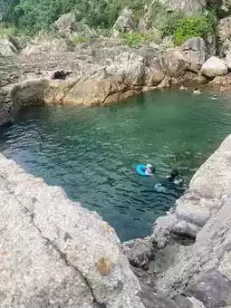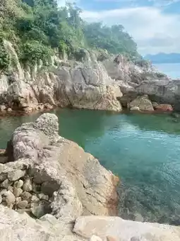 1: From Sai Kung Pier, walk along the coast to the kayak rental shop at the end, rent a kayak🛶, paddle to Kiu Tsui Island, then paddle from the left side of Pineapple Stone Beach on Kiu Tsui Island (opposite direction to Sai Kung) to the heart-shaped lake.