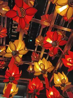 Because it was pouring rain when I arrived, the yellow light inside contrasted strongly with the blue sky outside, enriching all the color details. No filters were used, but it looked better than a natural filter. I avoided the statues of the gods where incense was burning.