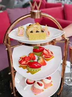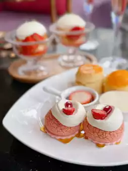 Spread with homemade strawberry jam, the sweet and tangy fruit aroma combined with smooth cream, paired with the included Ruinart Brut Rosé pink champagne 🥂 shimmering with a rose gold hue, faint berry aroma perfectly matches the desserts—just right!