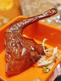 As for snacks, the roasted 🐦 pigeon is crispy on the outside and tender on the inside, even better than many restaurant offerings 👍.