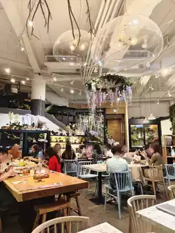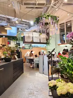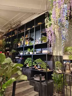 The ceiling is high, filled with elegant horticultural potted plants, making it feel like dining in a countryside setting, very relaxing ~